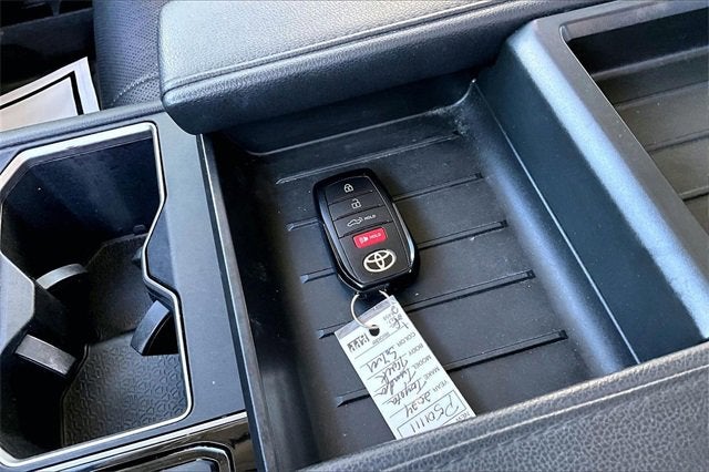 RECALL NOTICE: Some vehicles available for sale may have unrepaired safety recalls issued by the manufacturer. To check the recall status of any vehicle, please visit www.nhtsa.gov/recalls. PREMIUM AUDIO, PREMIUM WHEELS, SECURITY SYSTEM, Tundra Limited, 4D CrewMax, 3.4L V6, 10-Speed Automatic, 4WD, Silver, Black Leather, 20 Alloy Wheels, 3.31 Axle Ratio, 4-Wheel Disc Brakes, 8-Way Pwr Adjustable Heated/Ventilated Front Seats, 9 Speakers, ABS brakes, Air Conditioning, Alloy wheels, AM/FM radio: SiriusXM, Apple CarPlay/Android Auto, Auto High-beam Headlights, Auto-dimming door mirrors, Auto-dimming Rear-View mirror, Automatic temperature control, Brake assist, Bumpers: body-color, Delay-off headlights, Driver door bin, Driver vanity mirror, Dual front impact airbags, Dual front side impact airbags, Electronic Stability Control, Emergency communication system: Safety Connect (10-year trial), Exterior Parking Camera Rear, Front anti-roll bar, Front Bucket Seats, Front Center Armrest, Front dual zone A/C, Front fog lights, Front reading lights, Front wheel independent suspension, Fully automatic headlights, Garage door transmitter: HomeLink, Heated door mirrors, Heated front seats, Illuminated entry, Knee airbag, Leather Shift Knob, Low tire pressure warning, Memory seat, Navigation System, Occupant sensing airbag, Outside temperature display, Overhead airbag, Overhead console, Panic alarm, Passenger door bin, Passenger vanity mirror, Power door mirrors, Power driver seat, Power passenger seat, Power steering, Power windows, Radio data system, Radio: Audio Multimedia System, Rear reading lights, Rear seat center armrest, Rear window defroster, Remote keyless entry, Safety Connect, Security system, SofTex Seat Trim, Speed control, Speed-sensing steering, Split folding rear seat, Steering wheel mounted audio controls, Tachometer, Telescoping steering wheel, Tilt steering wheel, Traction control, Trip computer, Turn signal indicator mirrors, Variably intermittent wipers, Ventilated front seats, Voltmeter.